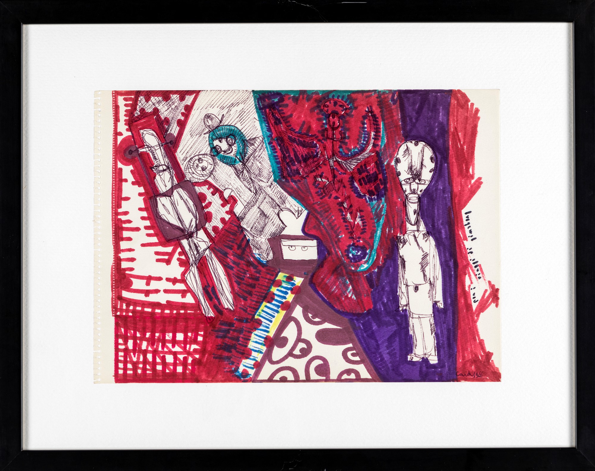 Lotto di 4 opere di Sebastiano Carta realizzate a tecnica mista (penna biro e pennarello su carta).