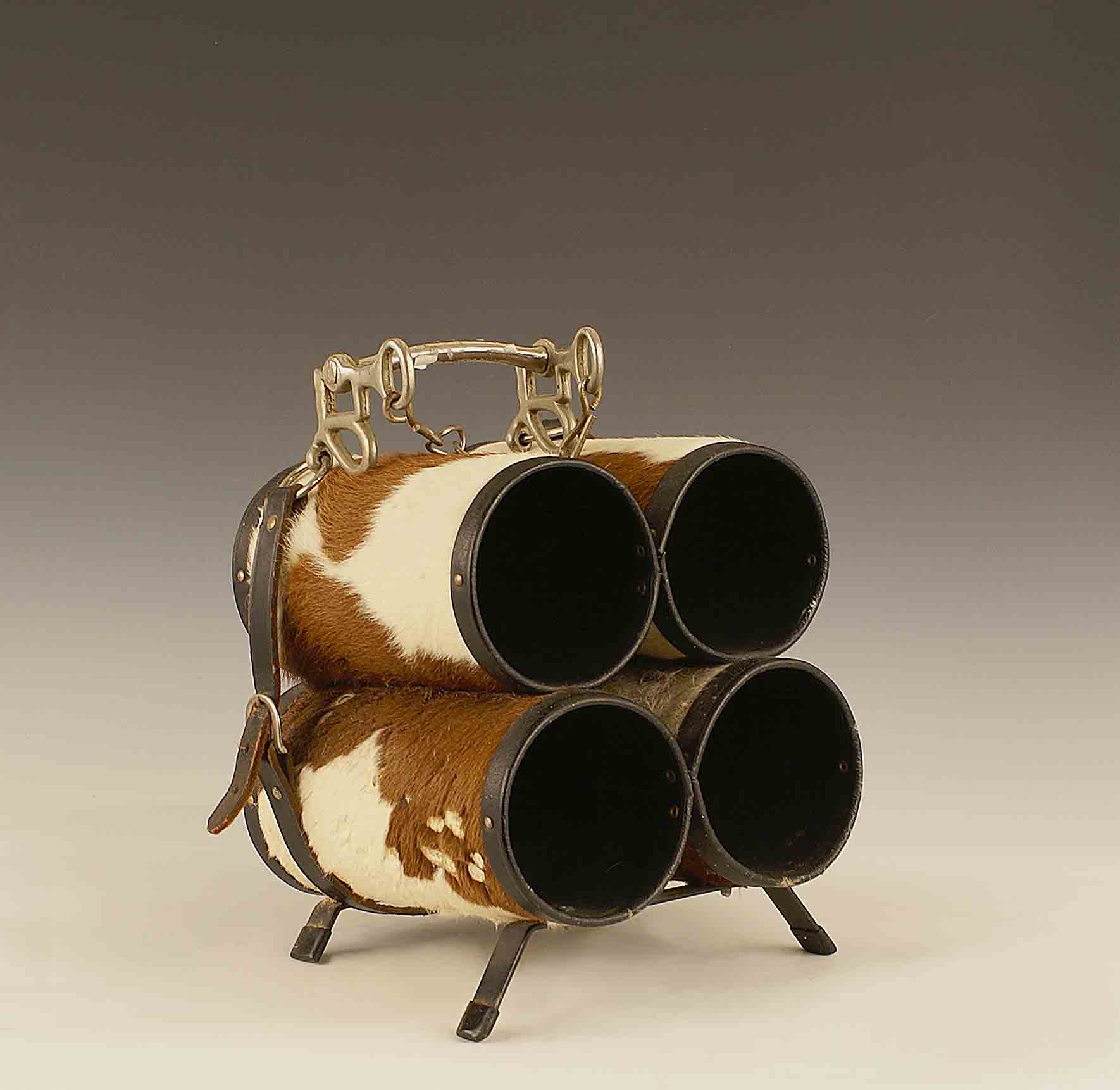 Particolare portabottiglie in cavallino e pelle, h. cm. 31.