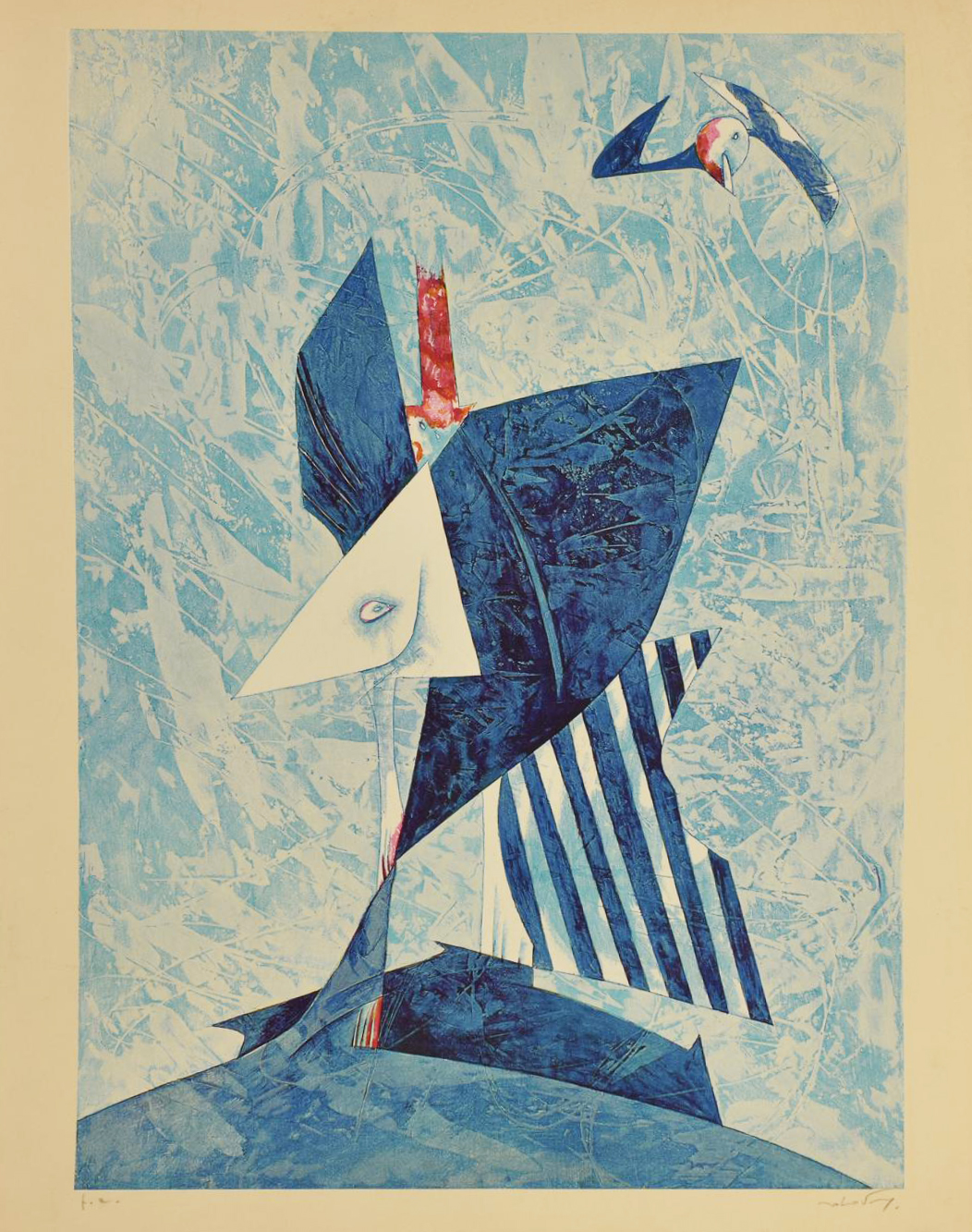 Gianni Dova (1925 - 1991) UCCELLO serigrafia, cm 80x60; es. p.a. firma e...