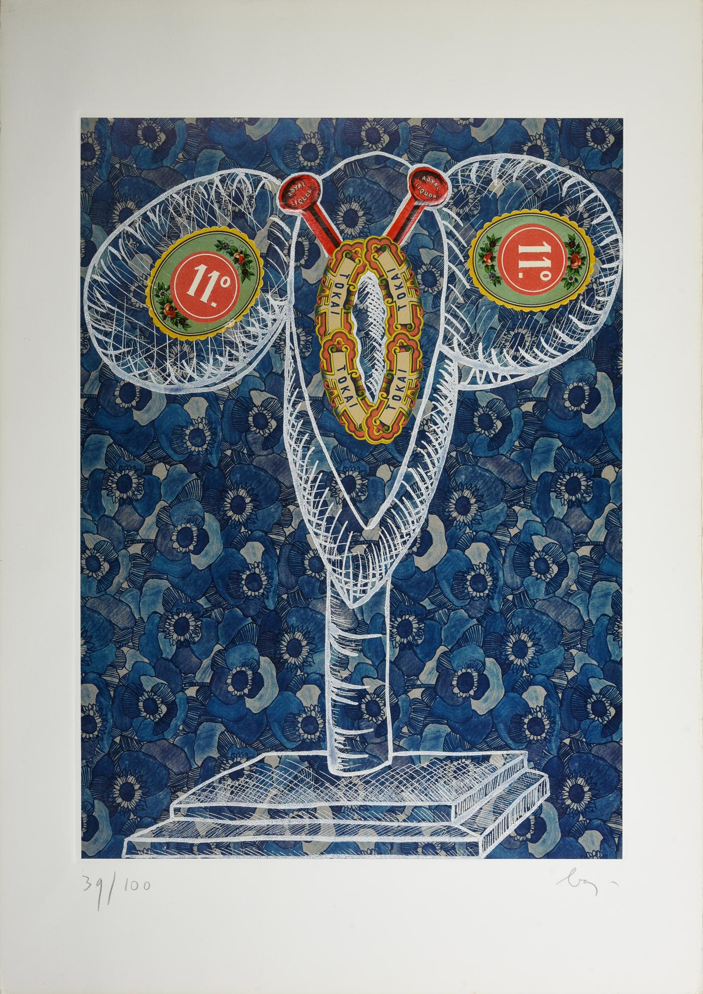 acquaforte-acquatinta con collage, cm 51,5x38,5, su foglio cm 70x50; es. 39/100
