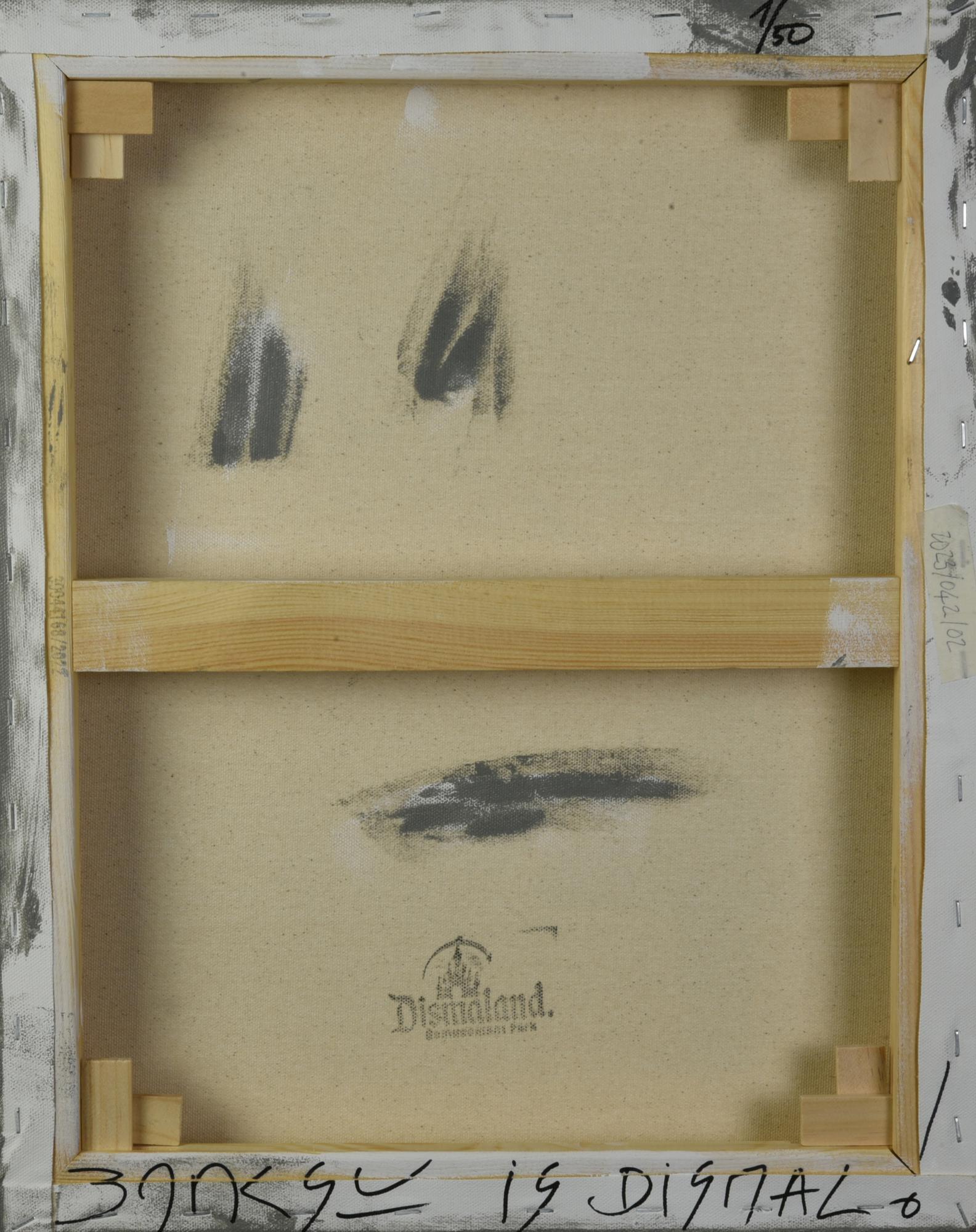 sul retro: iscritto "Banksy is Dismal!", timbro di Dismaland e tiratura