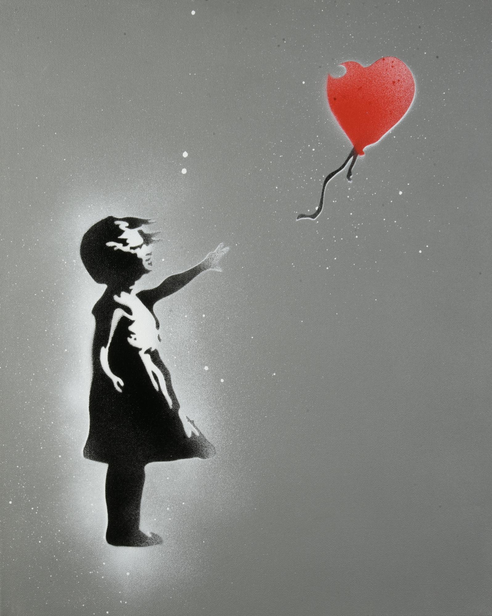 Banksy (1974) BALLOON GIRL IN GREY spray stencil su tela, cm 50x40x4; es....