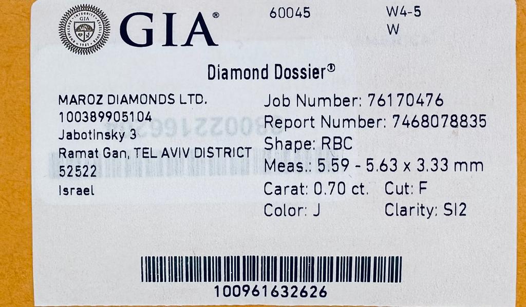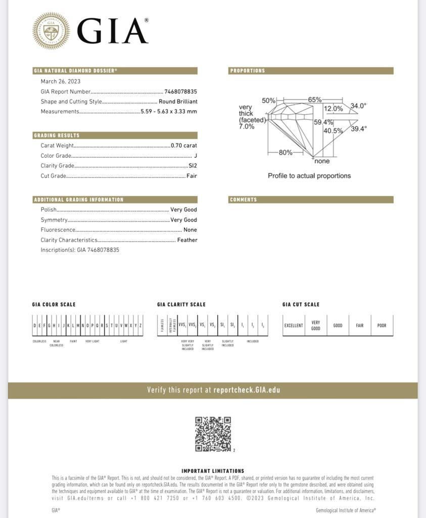 DIAMANTE 0,7 CT J - PUREZZA SI2 - TAGLIO BRILLANTE - CERTIFICATO GIA - C30305-4