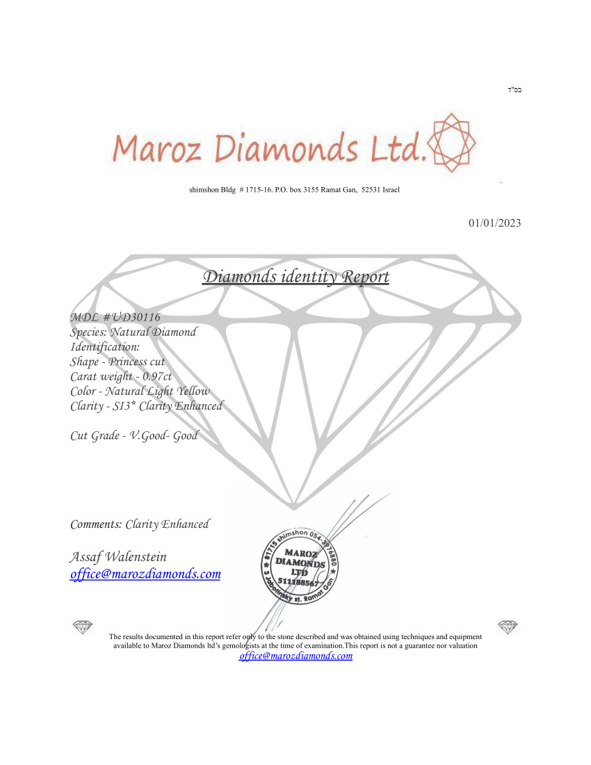 Lot 160 | DIAMANTE 0,97 CT COLORE FANCY GIALLO CHIARO - PUREZZA SI3* (PUREZZA ESALTATA)...