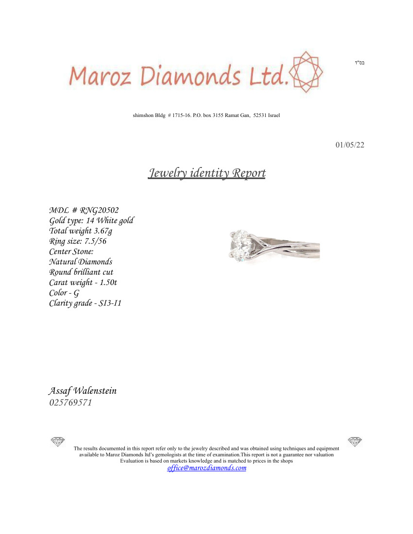 ANELLO IN ORO BIANCO 14K 3.67 GR CON DIAMANTE 1.50 CT - RNG20502