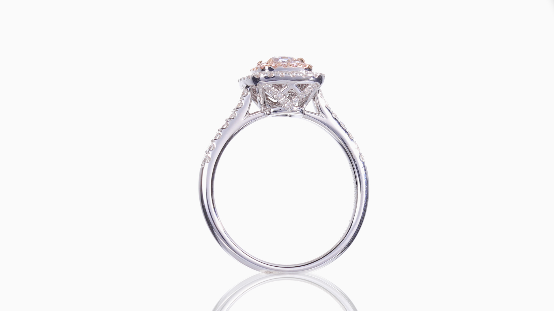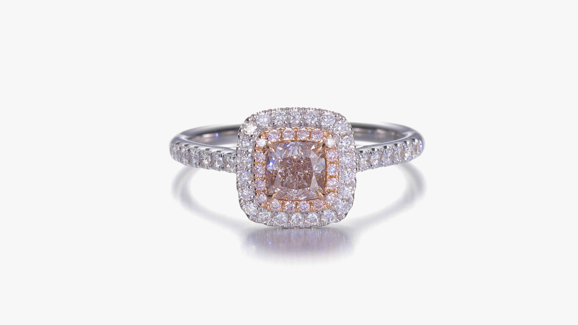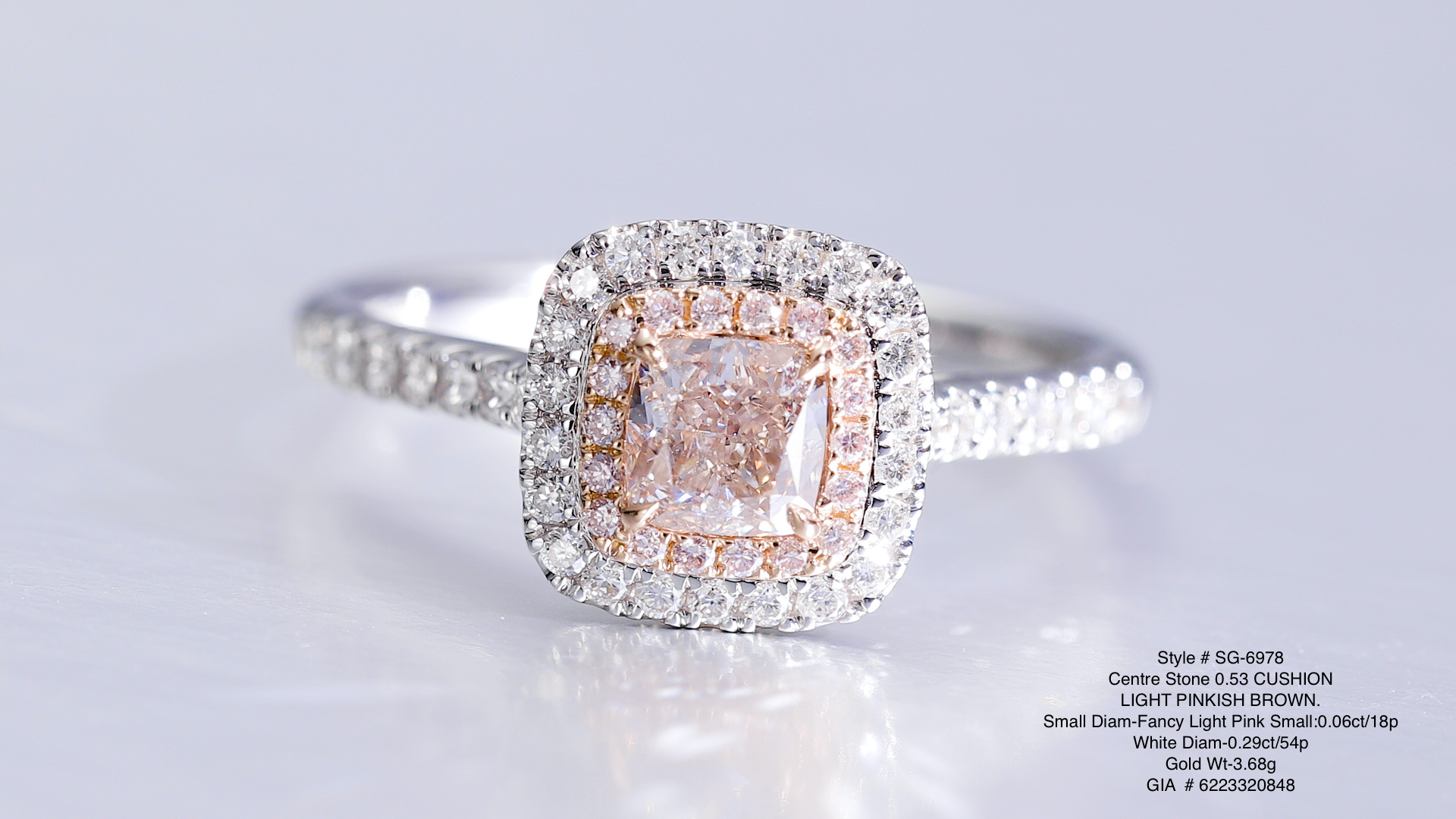 ANELLO IN ORO BIANCO 18K 3.68 GR DIAMANTE CENTRALE 0.53 CT MARRONE ROSASTRO + BRILLANTI ROSA PER 0.06 CT/18P + BRILLANTI PER 0.29 CT/54P COLORE D-F PUREZZA VS1 CERTIFICATO GIA - SG-6978