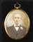 Miniatura ovale in ceramica dipinta a raffigurare ritratto maschile entro cornice in bronzo dorato e relativo astuccio in pelle, cm. 9x7.
