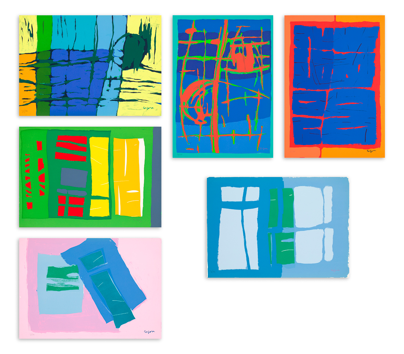 Raccolta completa di 6 serigrafie su cartoncino di Antonio Corpora, ciascuna recante firma a pennarello, numerazione (Esemplari 74/120) a matita al fronte e timbro dell'editore al retro