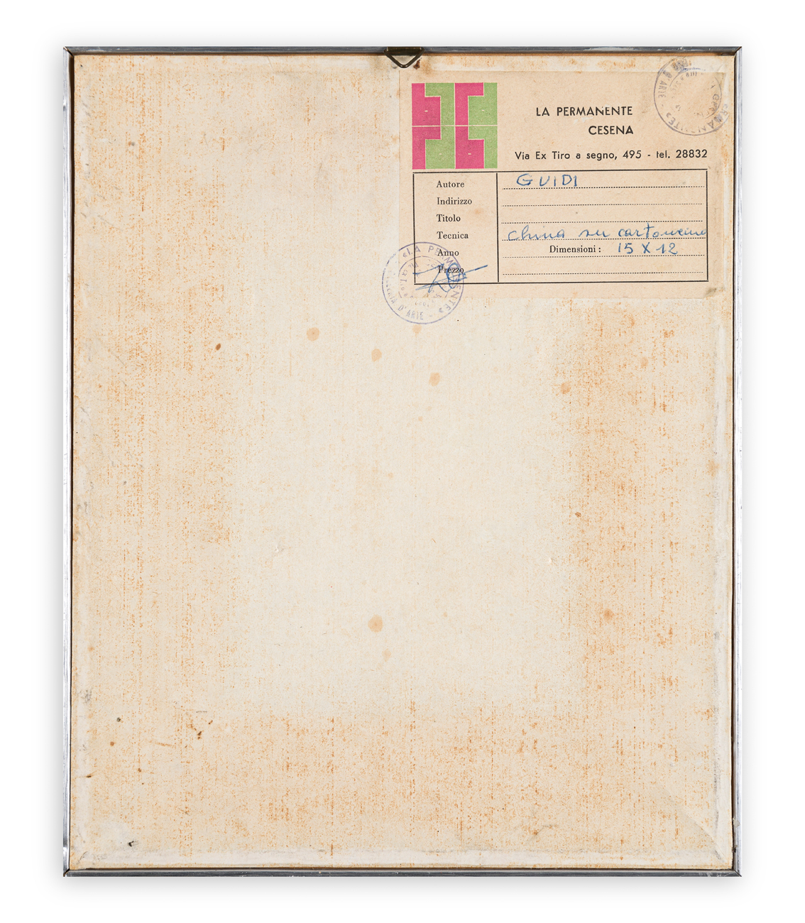 Etichetta e timbri della Galleria La Permanente (FC)