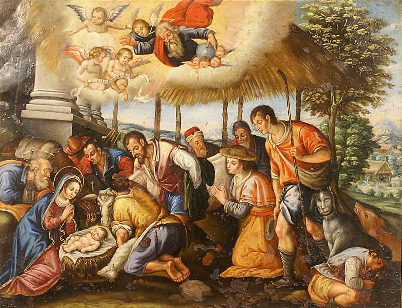 Scuola di Bassano del XVII secolo, "La natività con l'adorazione dei...