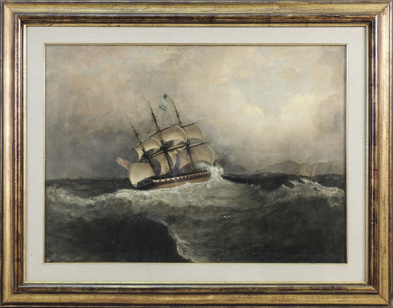 MARE IN TEMPESTA CON VELIERI - ROUGH SEA WITH SAILERS olio su tela - oil on canvas, firmato, in cornice cm 56x76