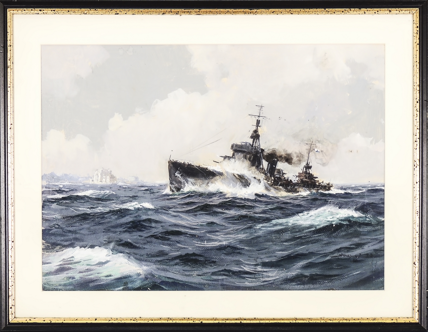 DIMITRIE STIUBEI (1901-1989) Nave militare - Military Ship tempera su cartoncino - tempera on cardboard firmato e datato '57, in cornice cm 40x55