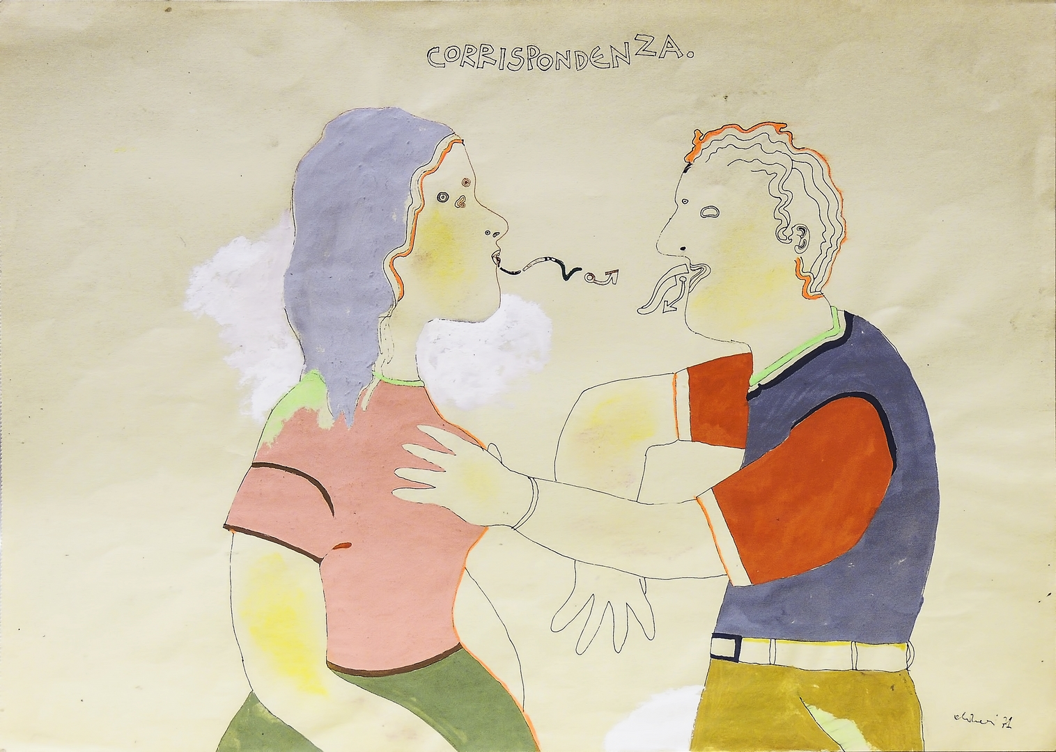 LUCA ALINARI Corrispondenza - Comunication tecnica mista su carta - mixed media on paper, firmato e datato 71 cm 35x48