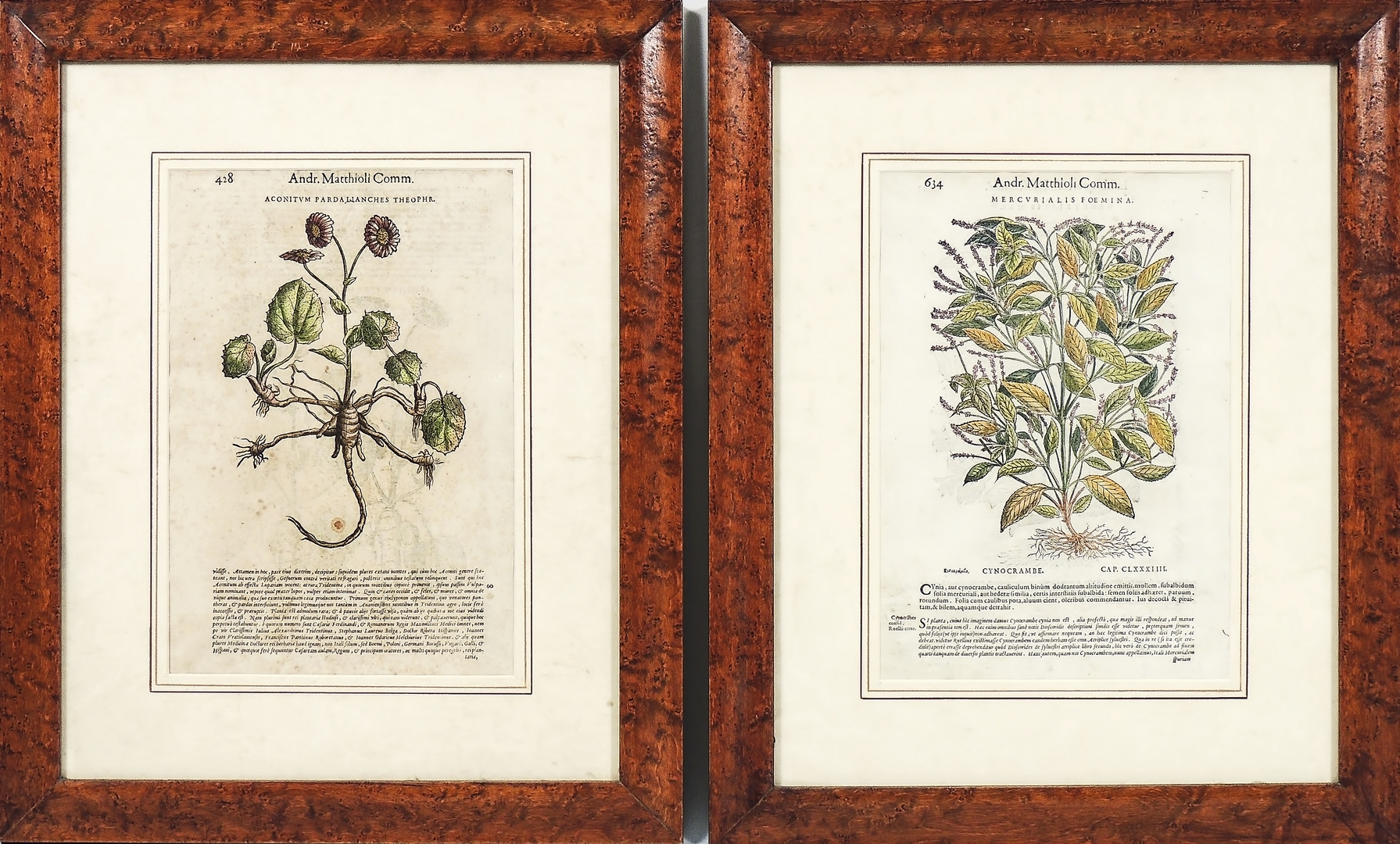 DA PETRUS ANDREA MATTIOLI - FROM PETRUS ANDREA MATTIOLI Serie di cinque pagine di erbario - Five Herbarium Plates, in cornice cm 33x22