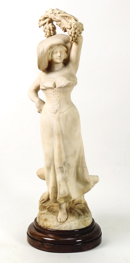 SCUOLA TOSCANA DELL'INIZIO DEL XX SECOLO - TUSCAN SCHOOL OF 20TH CENTURY Contadina con grappoli d'uva - Country Girl with a Bunch of Grapes scultura in alabastro - alabaster, su base in legno, difetto h cm 70