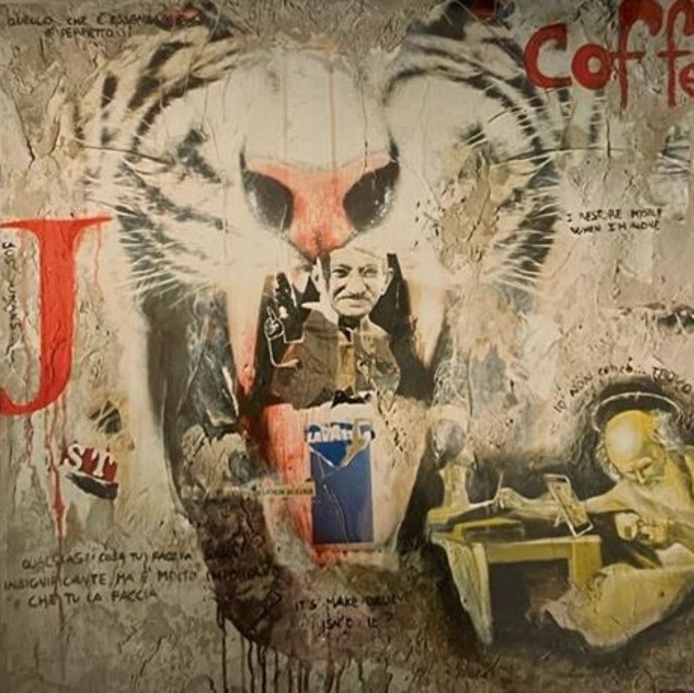 acrilico, cemento e collage su tela