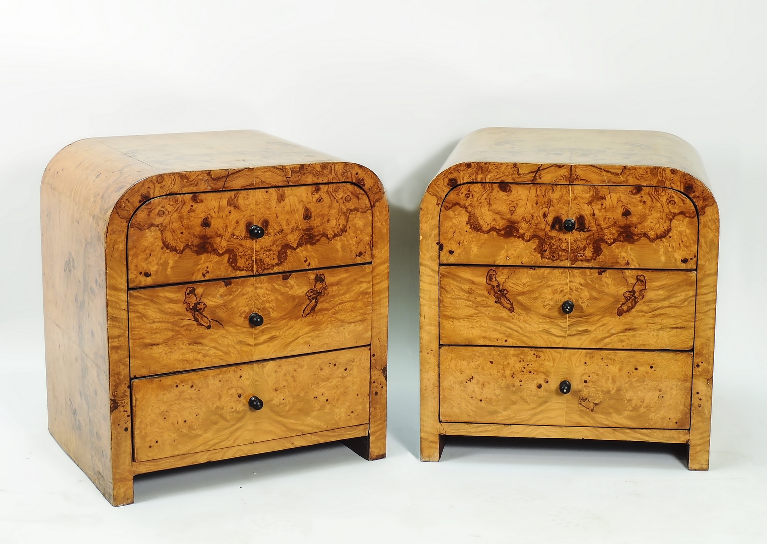 COPPIA DI COMODINI IN RADICA - PAIR OF BRIAR NIGHT TABLES STILE DÉCO - DECO STYLE tre cassetti sul fronte dritto h cm 54x50,5x40,5