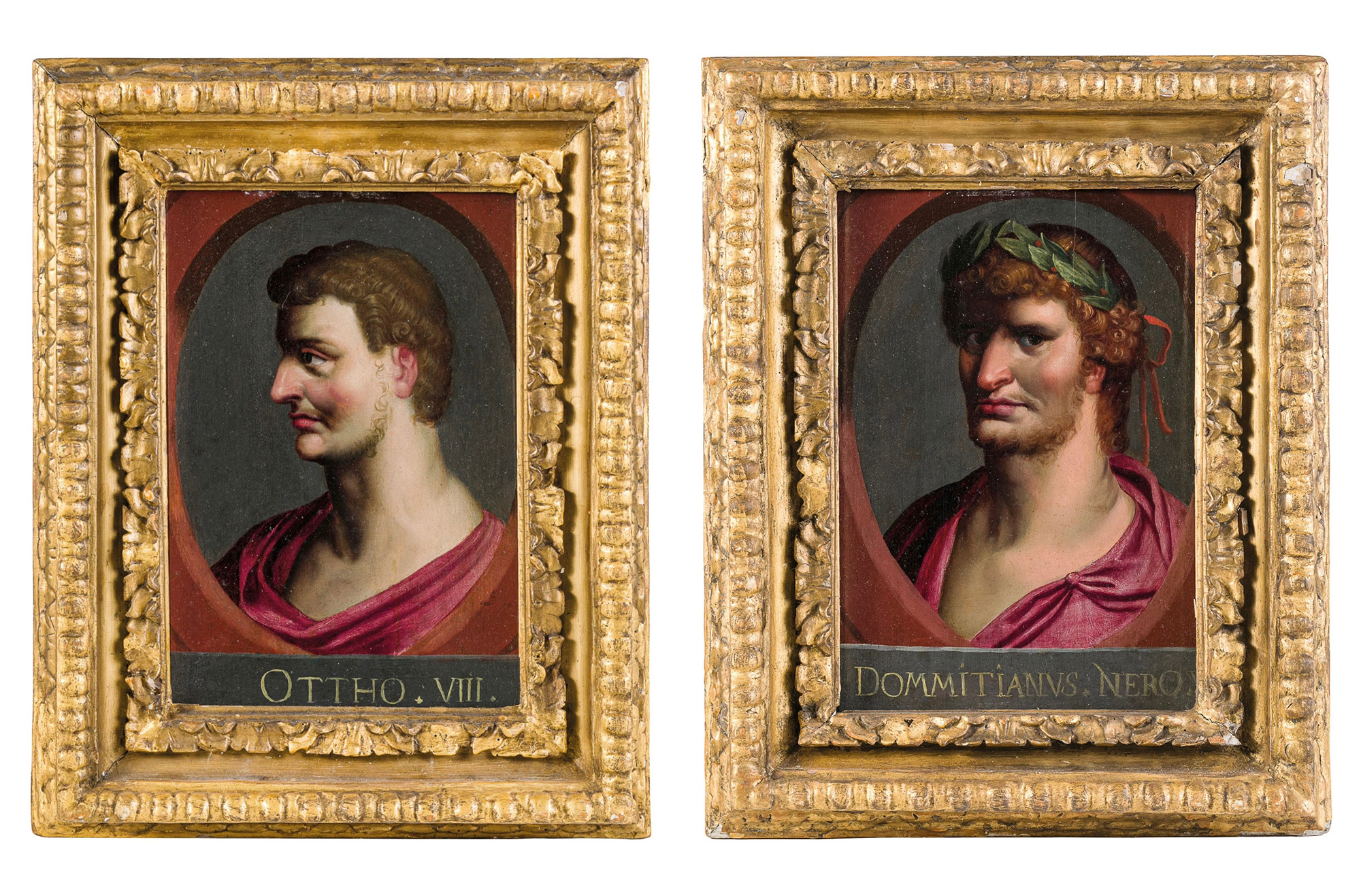 Scuola fiamminga del XVI secolo 'Imperatori' coppia di oli su tavola