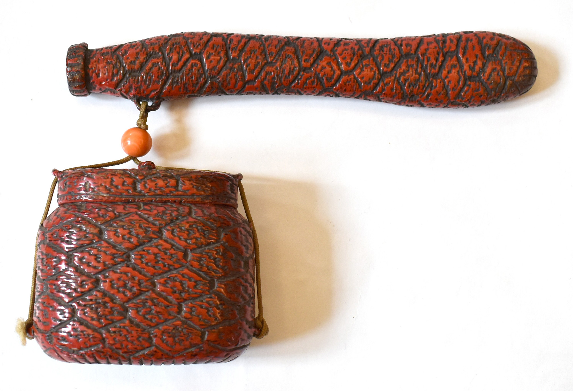 Giappone portatabacco e pipa in lacca rossa epoca Meiji 1866-1912