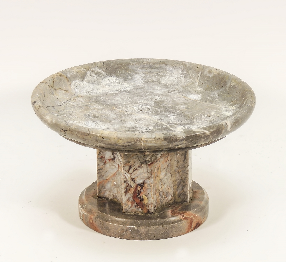 LOTTO - LOT due vasi in vetro soffiato decorati con venature grigie e un'alzata in marmo grigio, base a tronco di colonna (3)