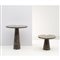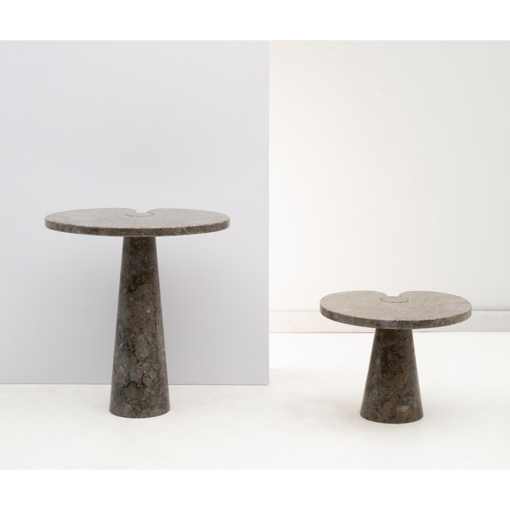 Due tavolini modello “Eros” in marmo grigio, altezze differenti. Etichetta di produzione.