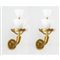 Coppia di lampade da parete a due luci, struttura in ottone, diffusori conici in vetro a reticello.