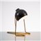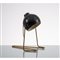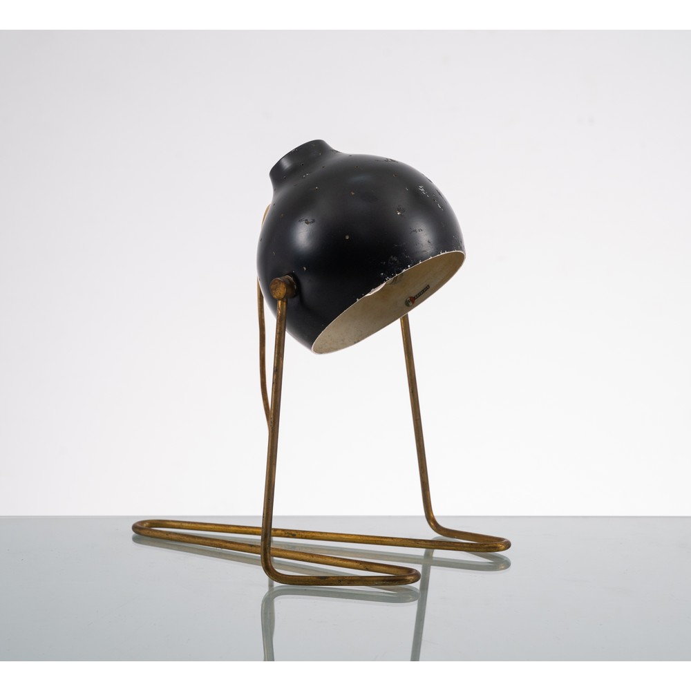 Lampada da tavolo ad una luce, struttura in tubolare di ottone, diffusore orientabile globulare in metallo verniciato nero.