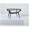 Tavolo basso in legno ebanizzato, piano rettangolare in vetro con decori incisi, sottopiano con fioriera in metallo verniciato verde, gamba curva.