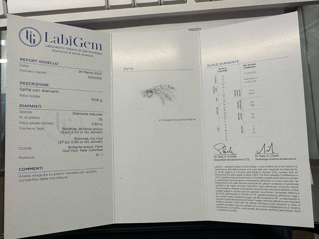 Lot 182 | SPILLA IN PLATINO CON 32 DIAMANTI: 5 PEZZI TAGLIO BRILLANTE PER UN TOTALE...