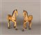 Coppia di sculture in tek raffiguranti cavalli, vecchia manifattura, cm. 76x60 (lievi difetti).