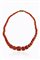composta da barilotti sfaccettati di corallo cerasuolo a scalare dal diam di mm 6,5 a 16,3. Chiusura in oro a bassa caratura a barilotto