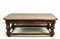 TAVOLINO BASSO IN NOCE - WALNUT TEA TABLE angoli scantonati, gambe a rocchetto riunite da traverse h cm 45x120,5x65