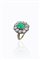 in oro giallo a bassa caratura ed argento, XIX secolo, al centro smeraldo taglio ottagonale a gradini di ct 1,0 ca, contornato da diamanti di vecchio taglio per totali ct 1,10 ca