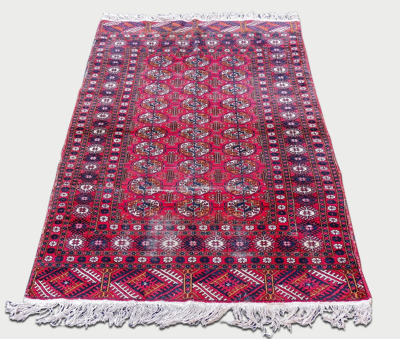 TAPPETO BUKARA - BUKARA RUG fondo rosso, campo con medaglioni nei toni del...