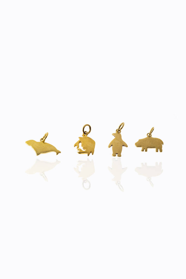 Lotto di quattro charms firmati "Pomellato", linea "Dodo", a forma di foca, granchio, pinguino e maiale