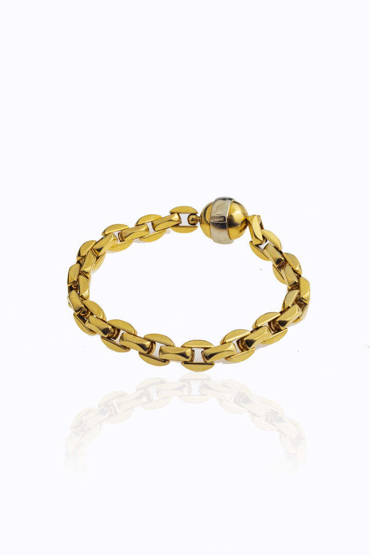 Bracciale in oro giallo, firmato "Barakà", lavorato a maglia geometrica. Chiusura a sfera