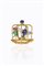 due smeraldi cabochon per totali ct 1,30 ca; due zaffiri cabochon di ct 2,0 ca, un rubino cabochon di ct 0,30 ca. Diamanti taglio brillante e 8/8 per totali ct 0,30 ca a decoro.