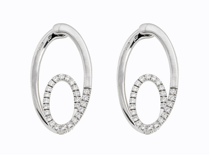 in oro bianco, a forma di cerchi ovalizzati, con diamanti taglio brillante per totali ct 0,51 ca, probabile colore G-H, purezza IF-VVS