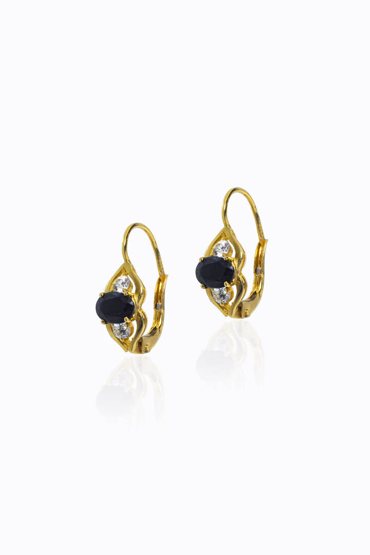 in oro giallo, a monachella, con due zaffiri taglio ovale e due gemme sintetiche
