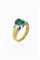 Anello in oro giallo e bianco, firmato "Harpo's", al centro smeraldo taglio ottagonale di ct 1,67 ca ed ai lati due diamanti taglio ottagonale per totali ct 1,02 ca, probabile colore G purezza IF-VVS