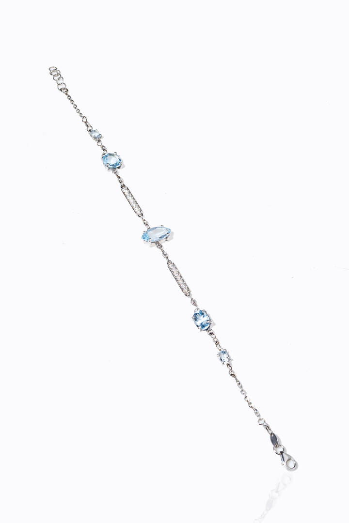 in oro bianco con acquamarine taglio navette, ovale e rotondo per totali ct 6,20 e due barrette in diamanti taglio brillante per totali ct 0,30 ca