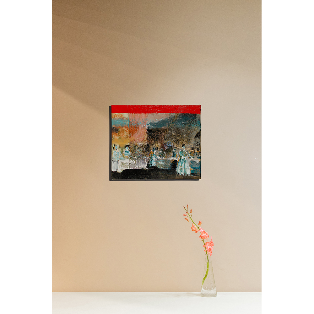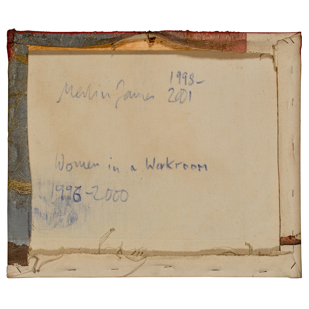 Firmato datato e titolato al verso: Merlin James 1998 - 2001 Women in a workroom 1996 - 2000