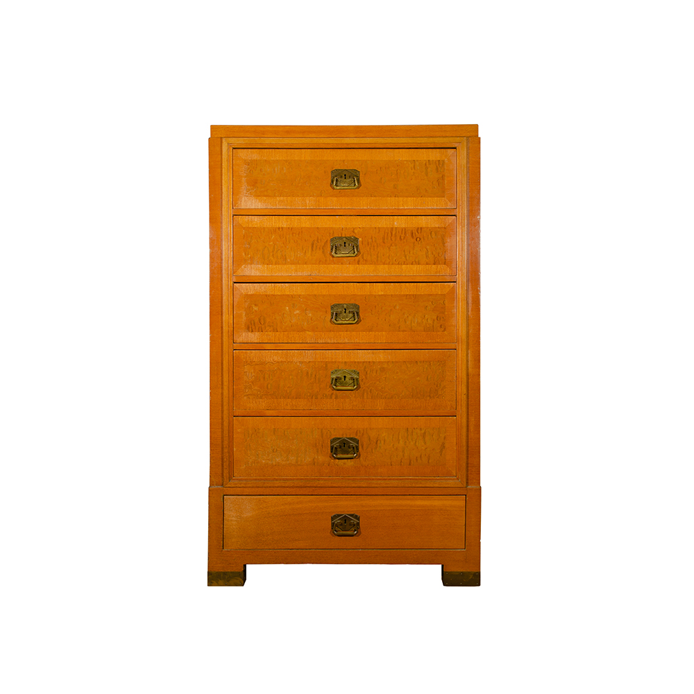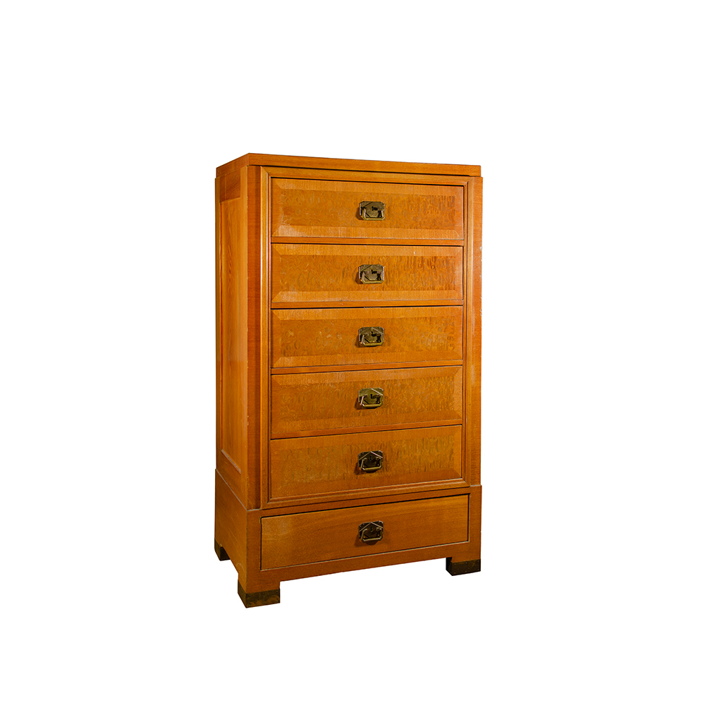 Settimanale in rovere a sei cassetti decorati in