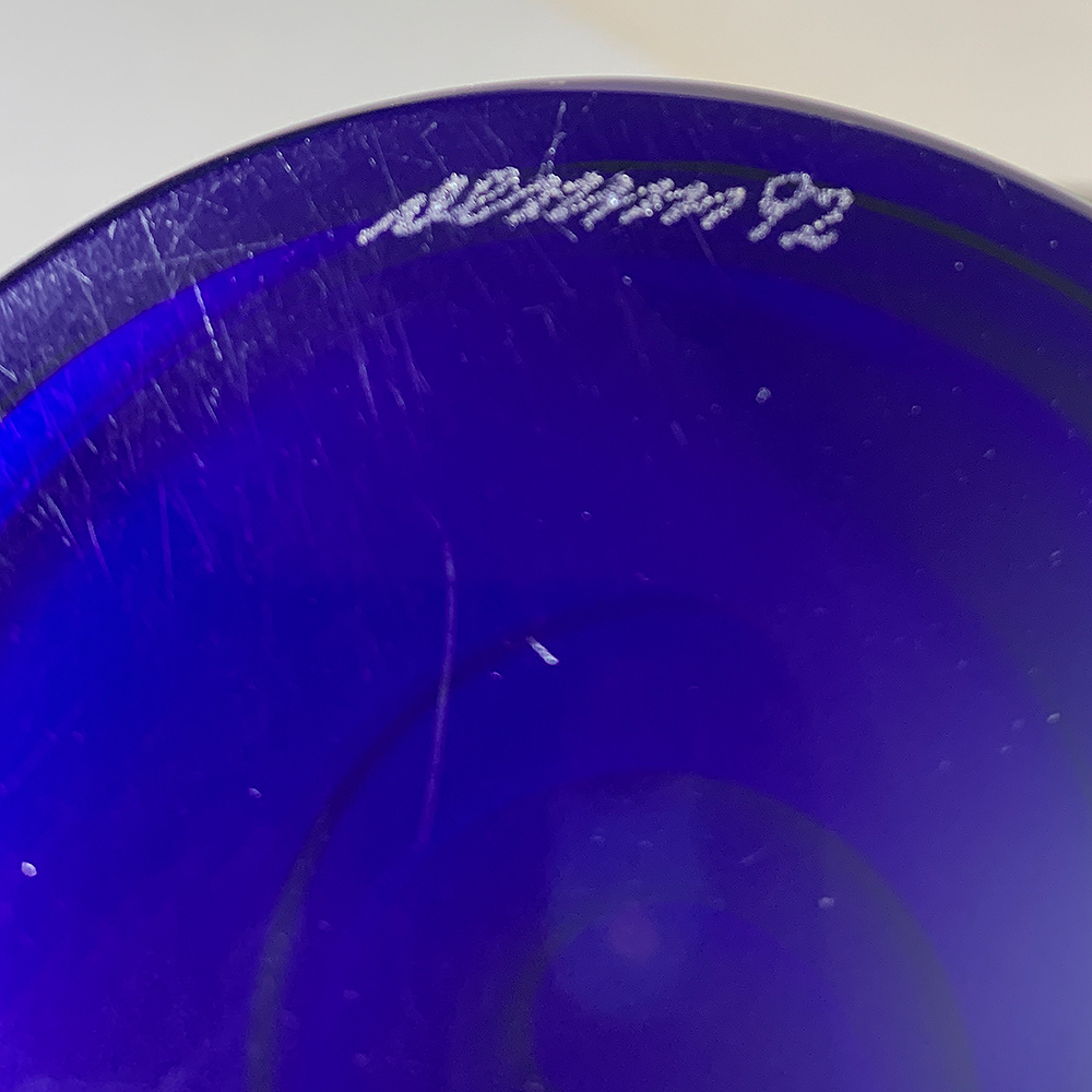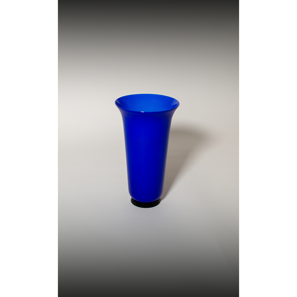in vetro soffiato opalino nei toni del blu, su base in pasta vitrea nera, 1992.