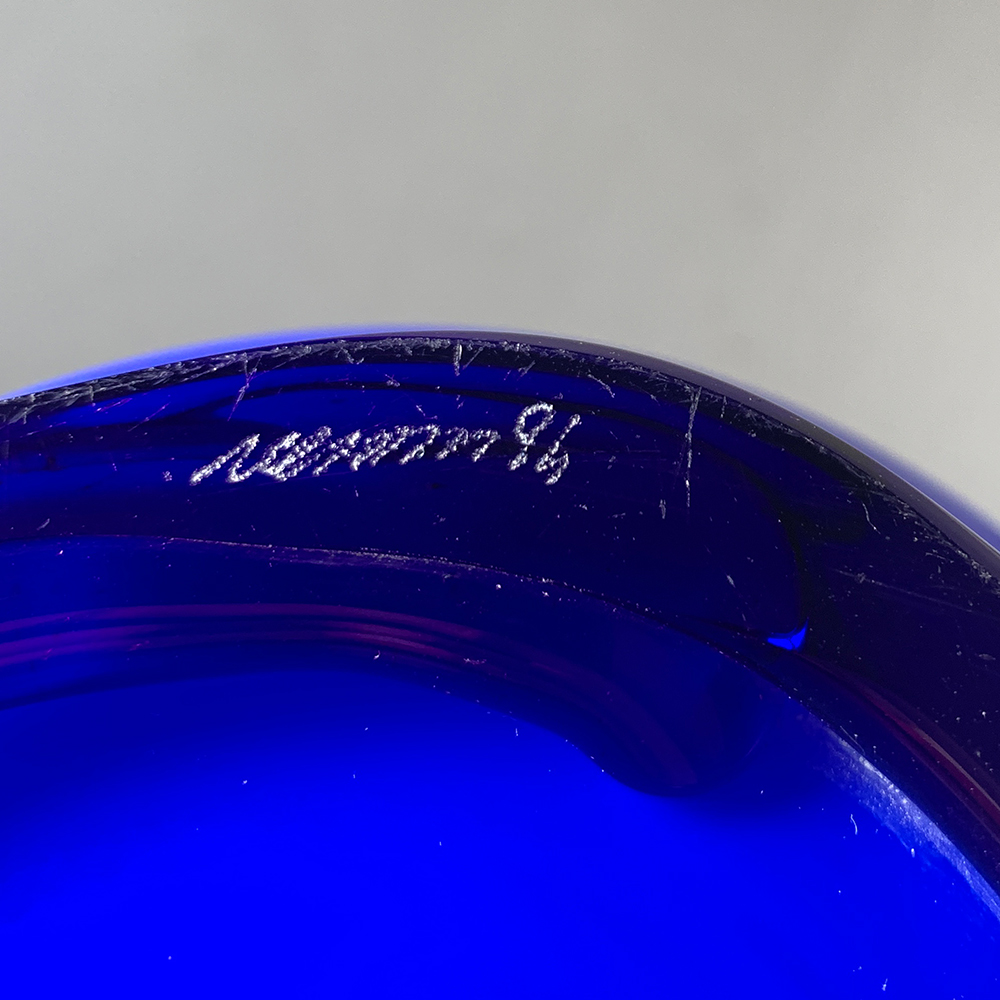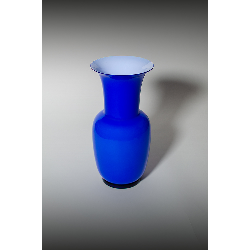 Vaso modello “Opalino” in vetro soffiato opalino nei toni del blu, 1994. Firma incisa: Venini 94