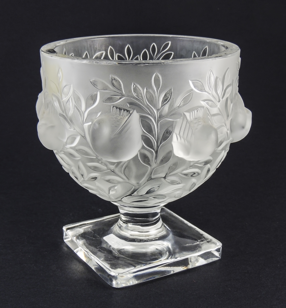 PICCOLO VASO IN CRISTALLO INCOLORE "ELISABETH" - SMALL UNCOLOURED CRYSTAL VASE "ELISABETH" Lalique con uccellini in rilievo su ramoscelli con foglie h cm 13,5 Firma incisa sotto la base "Lalique France"