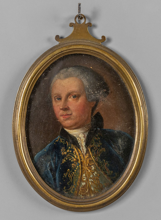 'Gentiluomo' olio su rame di forma ovale sec.XVIII cornicetta coeva in bronzo