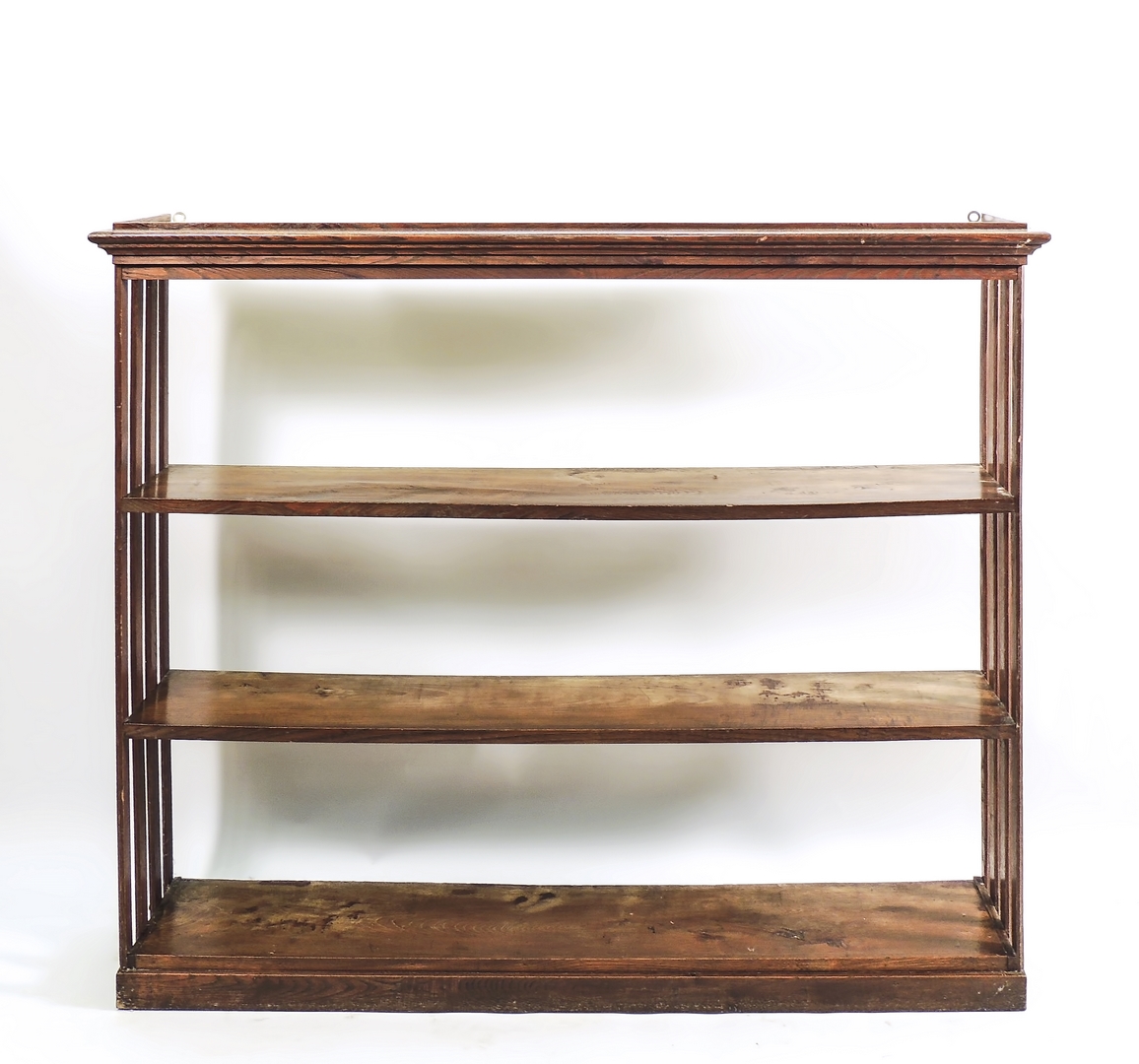 COPPIA DI ÉTAGÈRE PORTALIBRI IN ROVERE ED ALTRI LEGNI - PAIR OF WOODEN BOOK-CASE prima metà del XX secolo, early 20th century fianchi a stecche ognuna con tre scaffali a giorno h cm 98x106x126