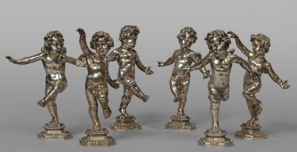 Sei angioletti danzanti in argento in stile antico argentiere Codevilla
