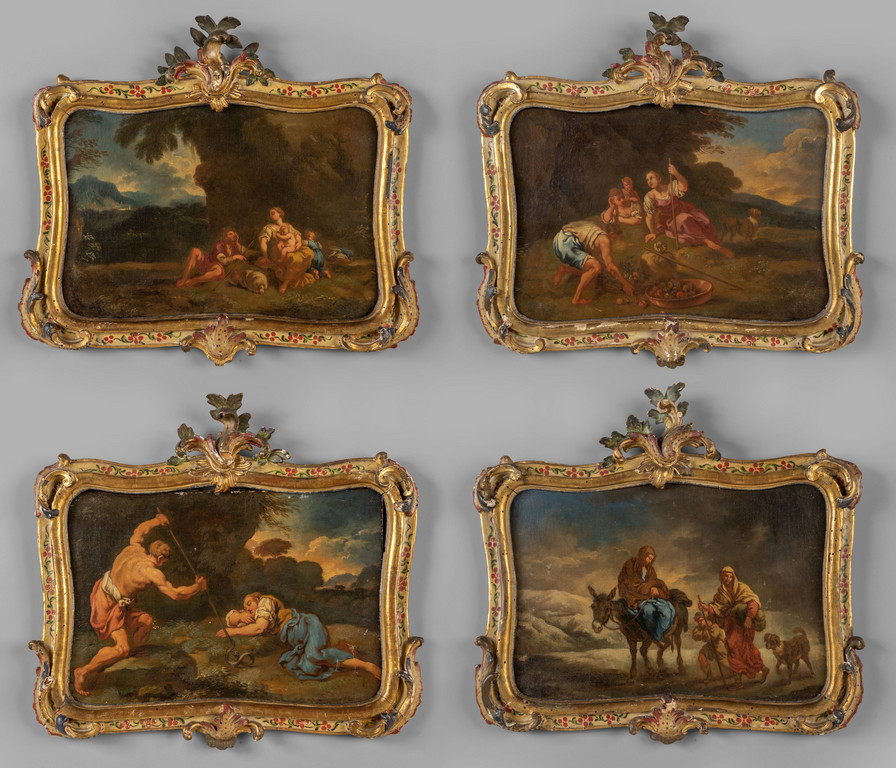 'Allegoria delle quattro stagioni' quattro olii splendide cornici coeve in legno intagliato e laccato
